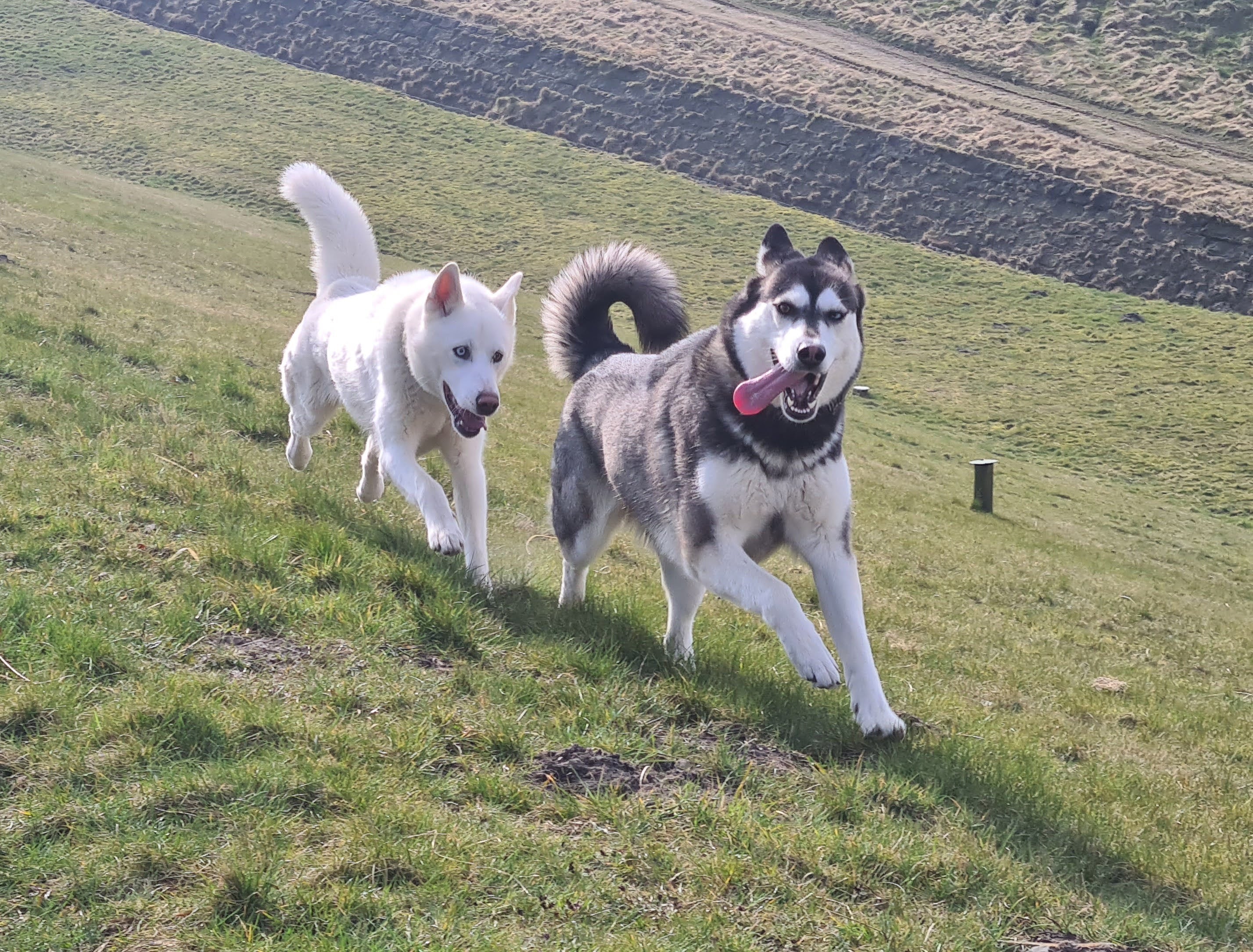 Meet Elsa the Siberian Husky and Raven the Shepsky.